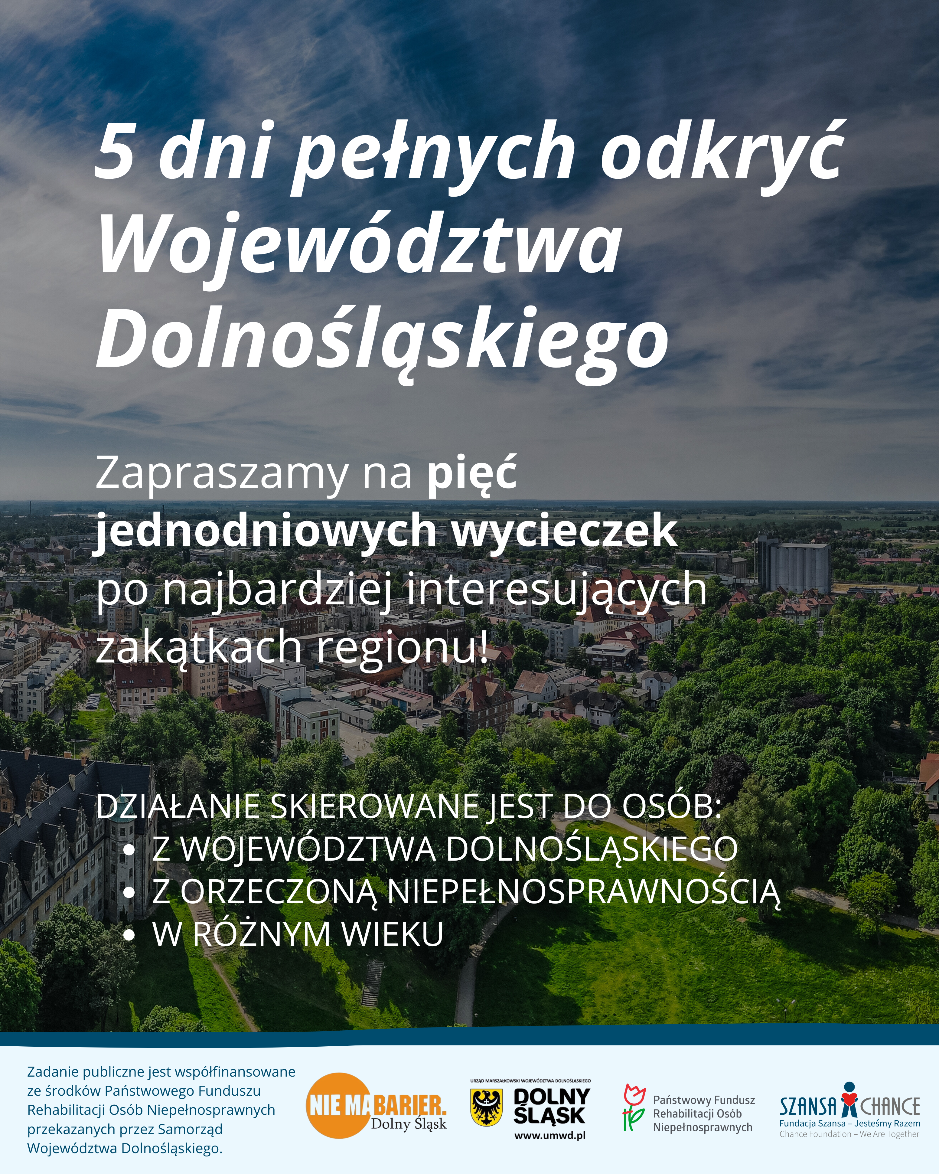 Zapraszamy do współpracy przy projekcie, którego celem jest zwiększenie dostępności atrakcji turystycznych i kulturalnych dla osób z niepełnosprawnościami, integracja społeczna oraz promowanie równości szans. Dzięki kompleksowemu podejściu i zaangażowaniu lokalnych instytucji, projekt ma na celu tworzenie pozytywnych doświadczeń oraz budowanie wizerunku Dolnego Śląska jako regionu otwartego i dostępnego dla wszystkich mieszkańców i gości.