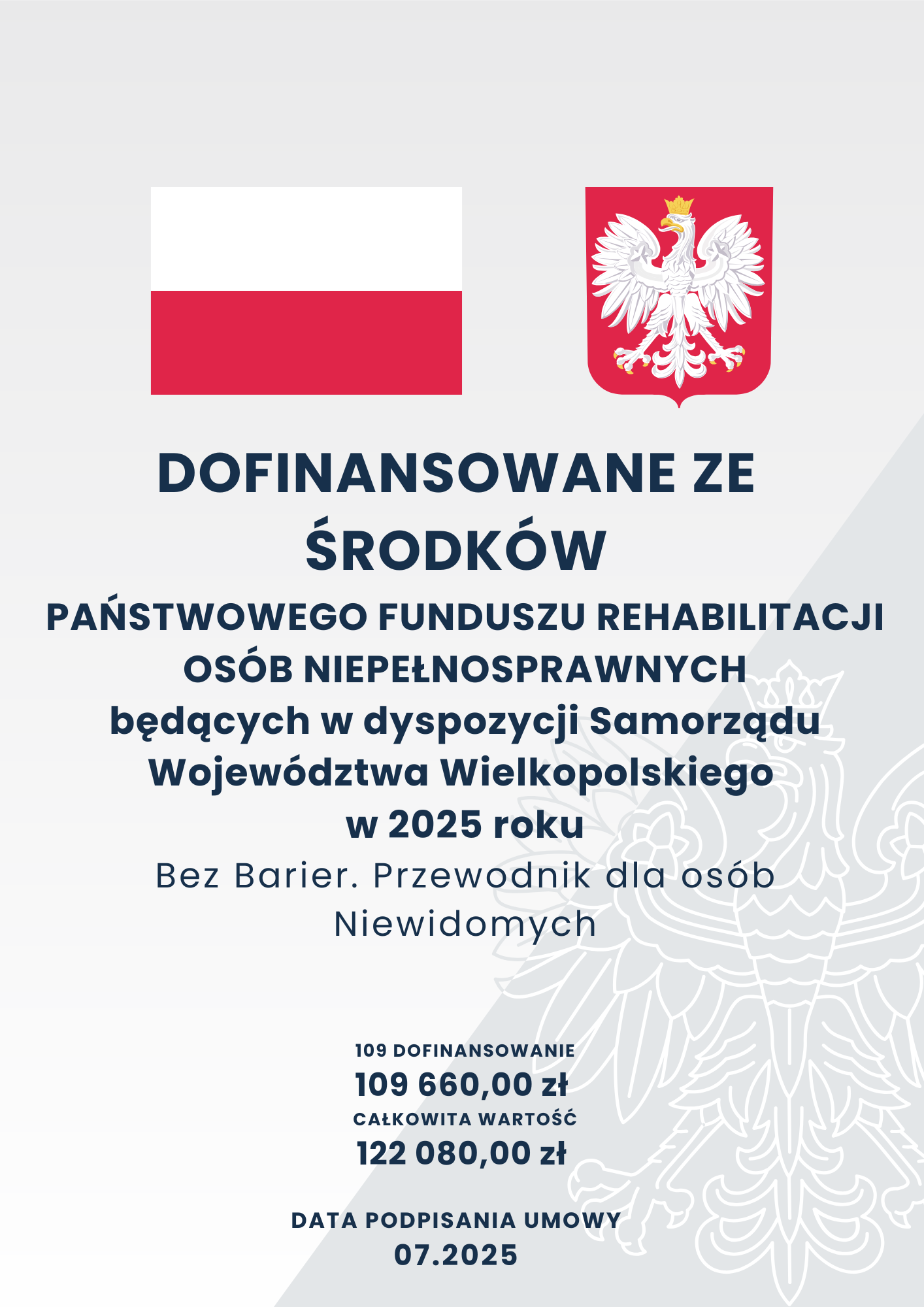 Dofinansowano ze środków Państwowego Funduszu Rehabilitacji Osób Niepełnosprawnych będących w dyspozycji Samorządu Województwa Wielkopolskiego w 2025 roku.