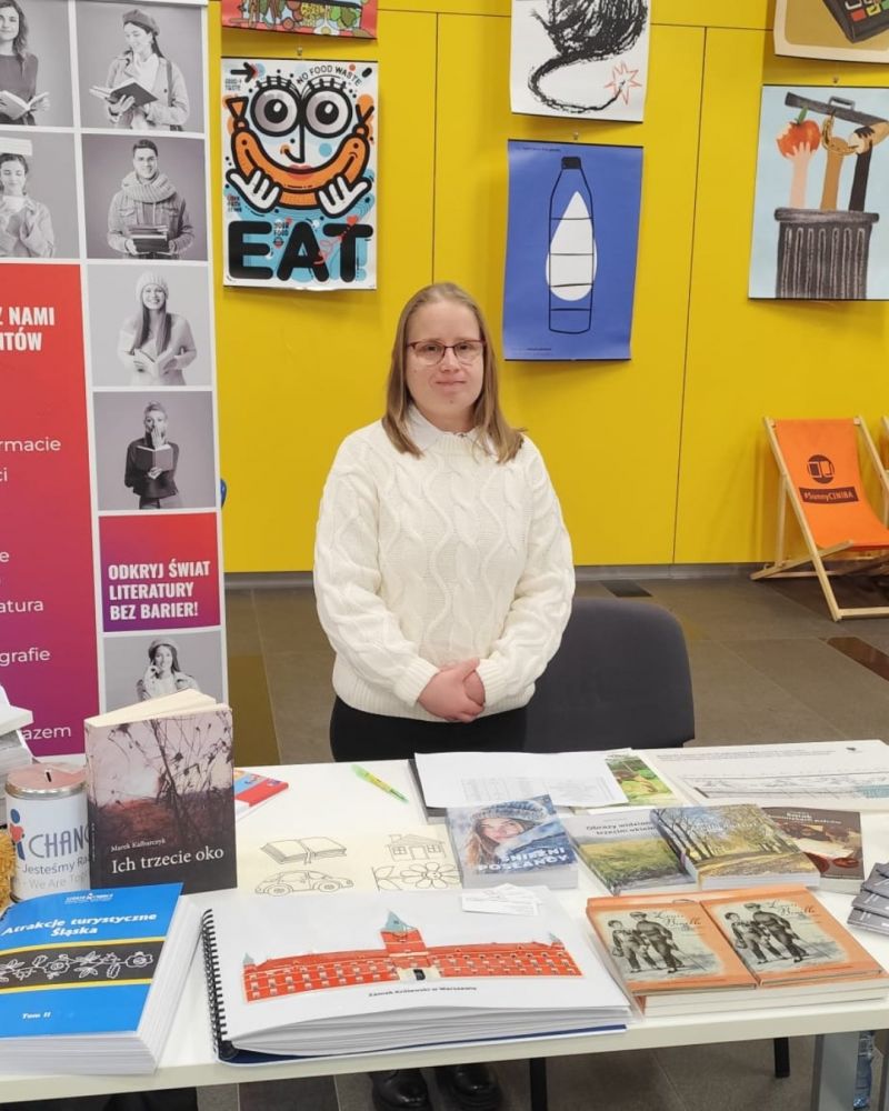 Uczestnicy mogli również poznać literaturę i sprzęt wspierający osoby z dysfunkcją wzroku – to była doskonała okazja do nauki i budowania empatii.