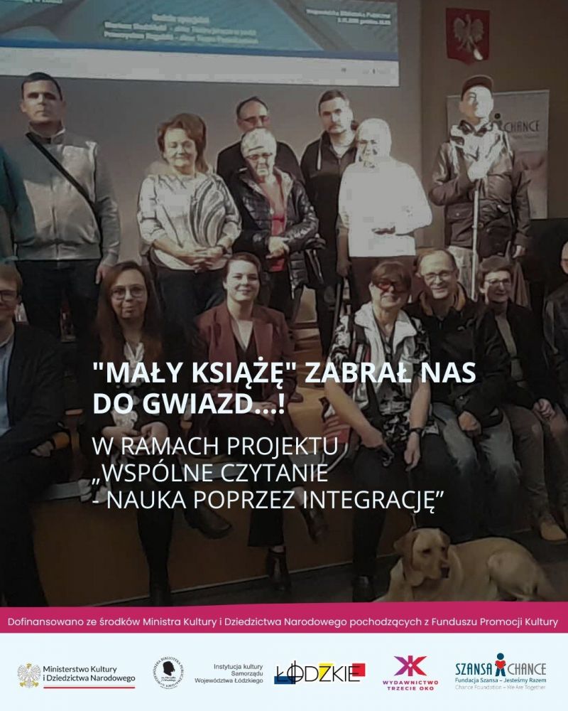 W ramach projektu „Wspólne czytanie – nauka poprzez integrację” w Łodzi odbyło się wyjątkowe spotkanie pod hasłem „Dobrze widzi się tylko sercem”, inspirowane ponadczasową powieścią Antoine’a de Saint-Exupéry’ego. Wspólne czytanie książki – z udziałem osób widzących i niewidomych – pozwoliło nam spojrzeć na świat oczami innych i poczuć prawdziwą magię słów.