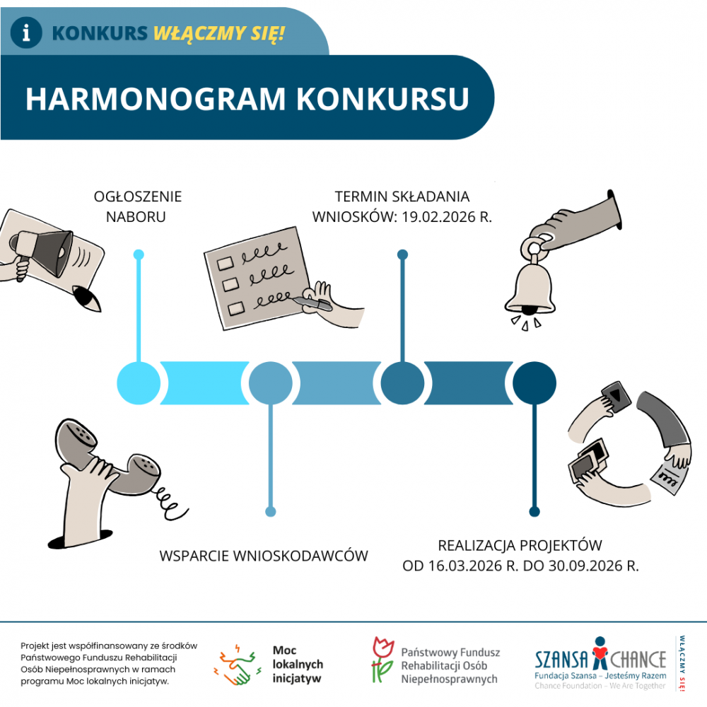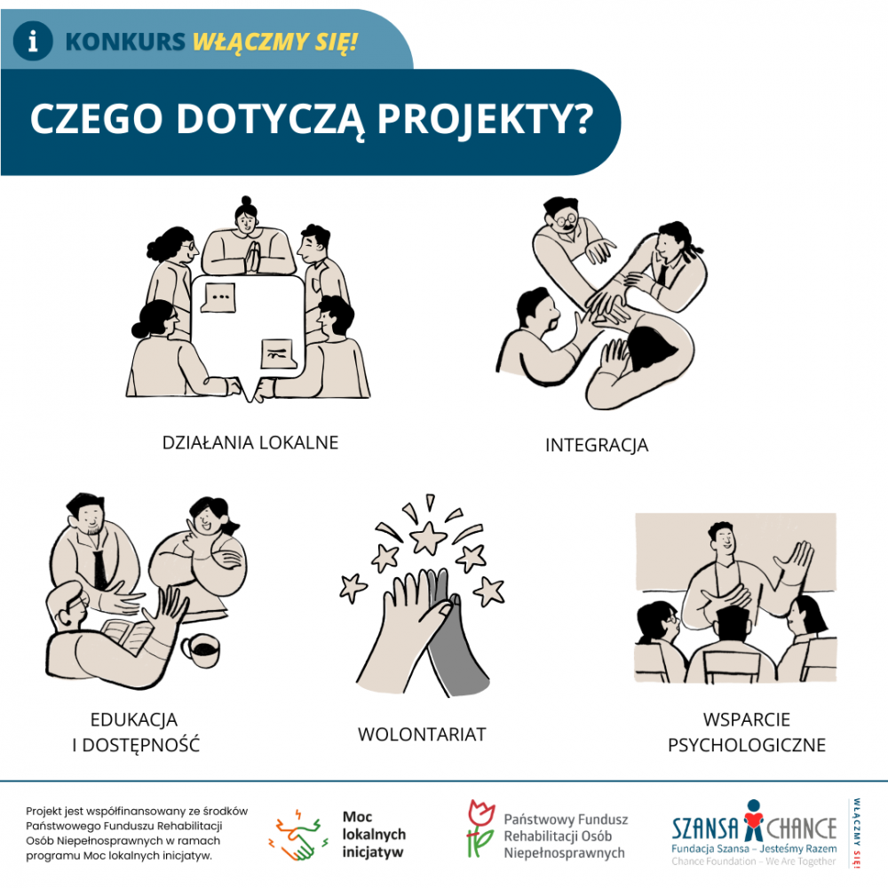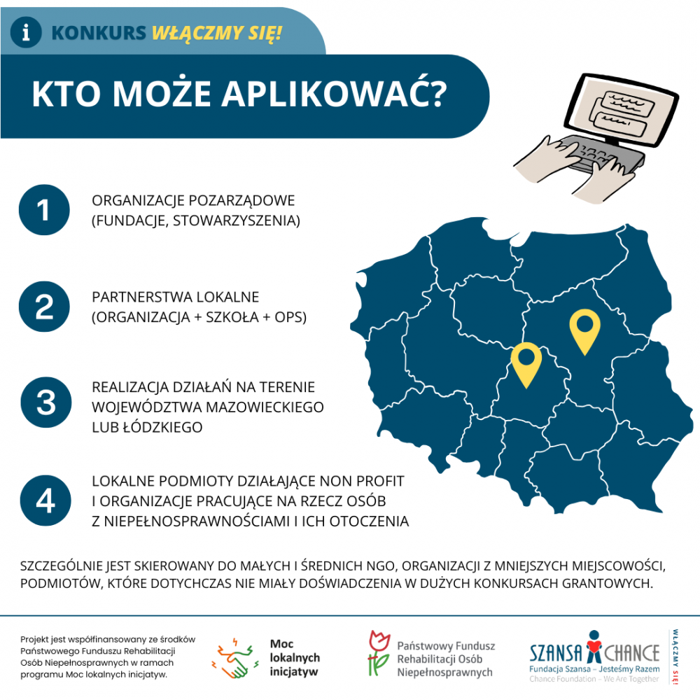Nasza Fundacja jako operator projektu regrantingowego „Włączmy się!” ogłasza nabór wniosków dla organizacji pozarządowych działających na rzecz osób z niepełnosprawnościami w województwach mazowieckim i łódzkim.